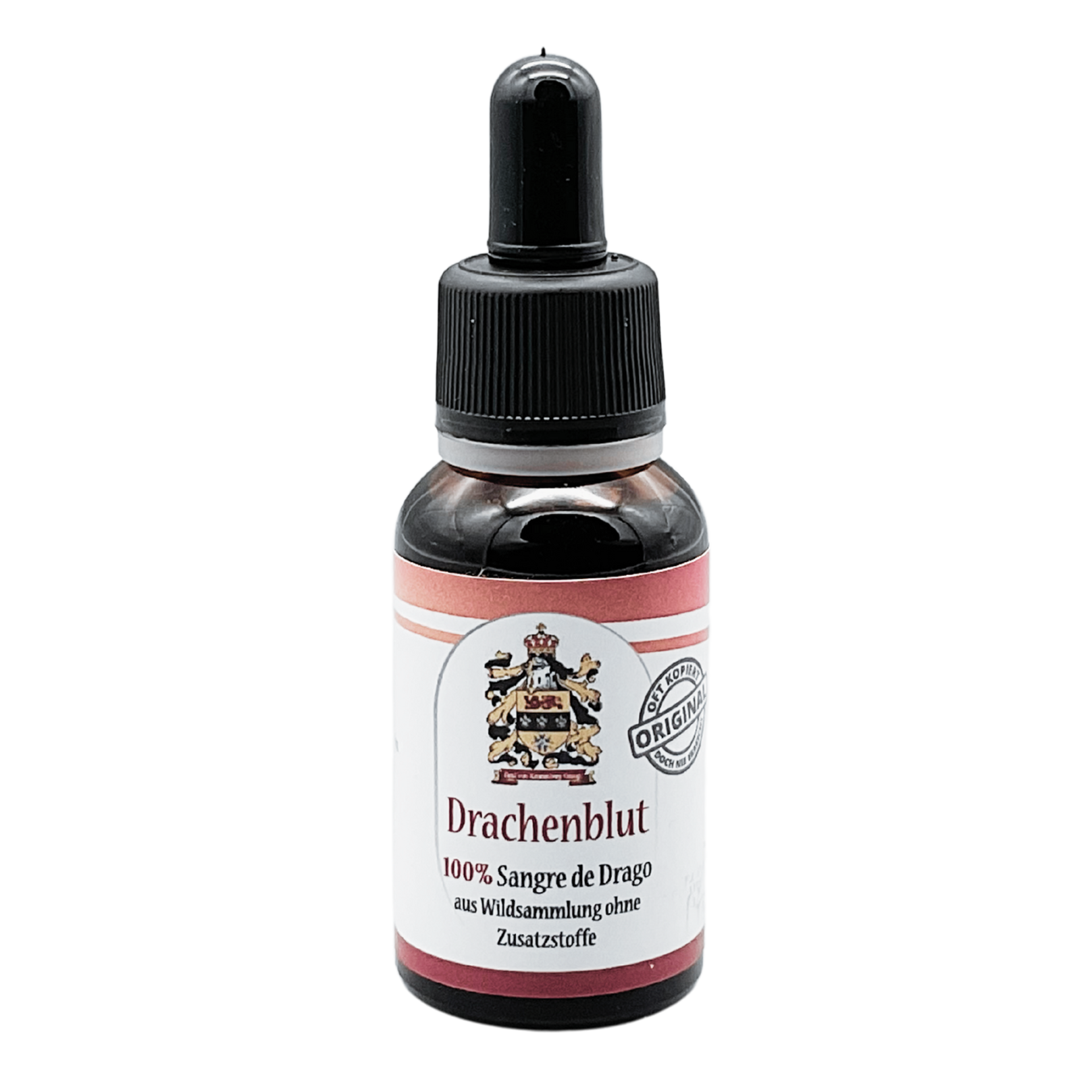 Sangre de Drago (Drachenblut) ist ein tiefroter Pflanzensaft aus dem Harz des Croton lechleri-Baumes aus dem peruanischen Amazonas. Der naturreine Saft stammt aus nachhaltiger Wildsammlung und enthält pflanzliche Stoffe wie OPC, Flavonoide und Taspin.