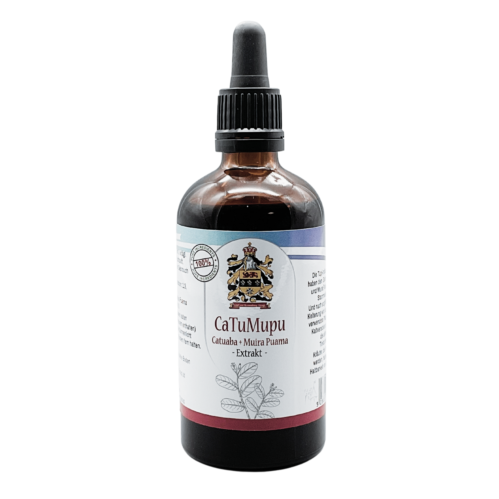 Inhalt: 100ml reine Catuaba und Muri Puama Ultraschall Extraktion / 25% Alkohol / In brauner medizinischer Glasflasche mit Pipette.